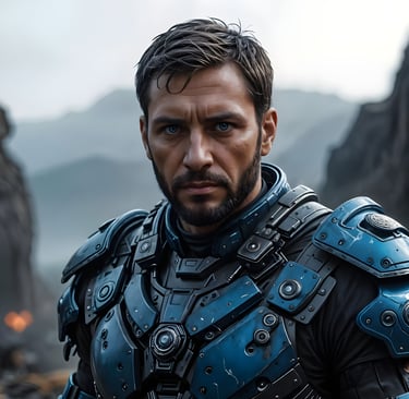 „Der Rudelführer“ Ein Alphawolf, ein Raubtier, skrupellos und verschlagen. Jeder Angst trotzend. Ein Spezialist im Guerillakampf. Verfolgt von seiner Abstammung, doch niemals vollständig entwurzelt von seiner Heimat. Fest auf vertrauten Pfaden voranschreitend richtet er den Blick den hellen Sternen entgegen. Mit unerschütterlichem Glauben an die Menschheit und ihre Zukunft. Ein loyaler Legionär der blauen Garde.